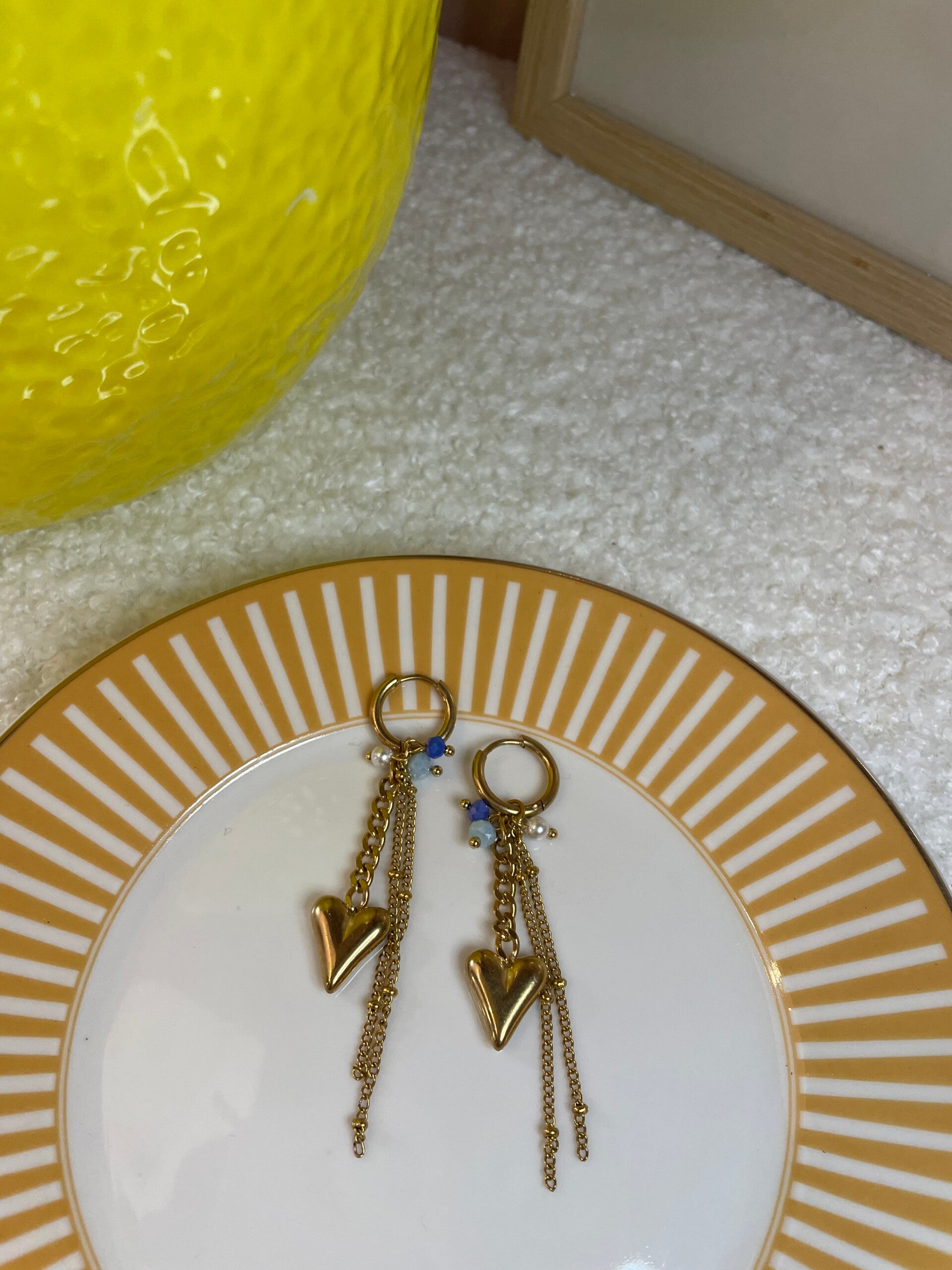 Heart drop blue oorbellen goud