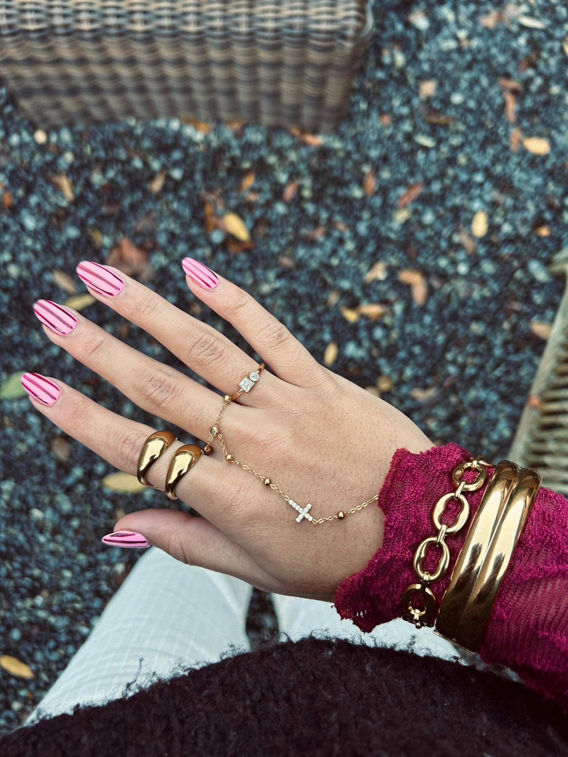 Cross handchain goud